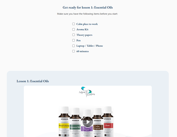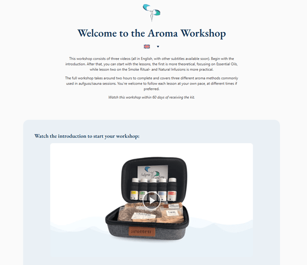 We pair a physical product with a digital workshop on the use and safe management of three different aroma methods, the aroma course is custom made to fit the contents of the kit (essential oils, infusions & smoke ritual aroma’s), guiding a participant though the methods combining theory with practise. using different video course modules (intro, oils, smoke & infusions)